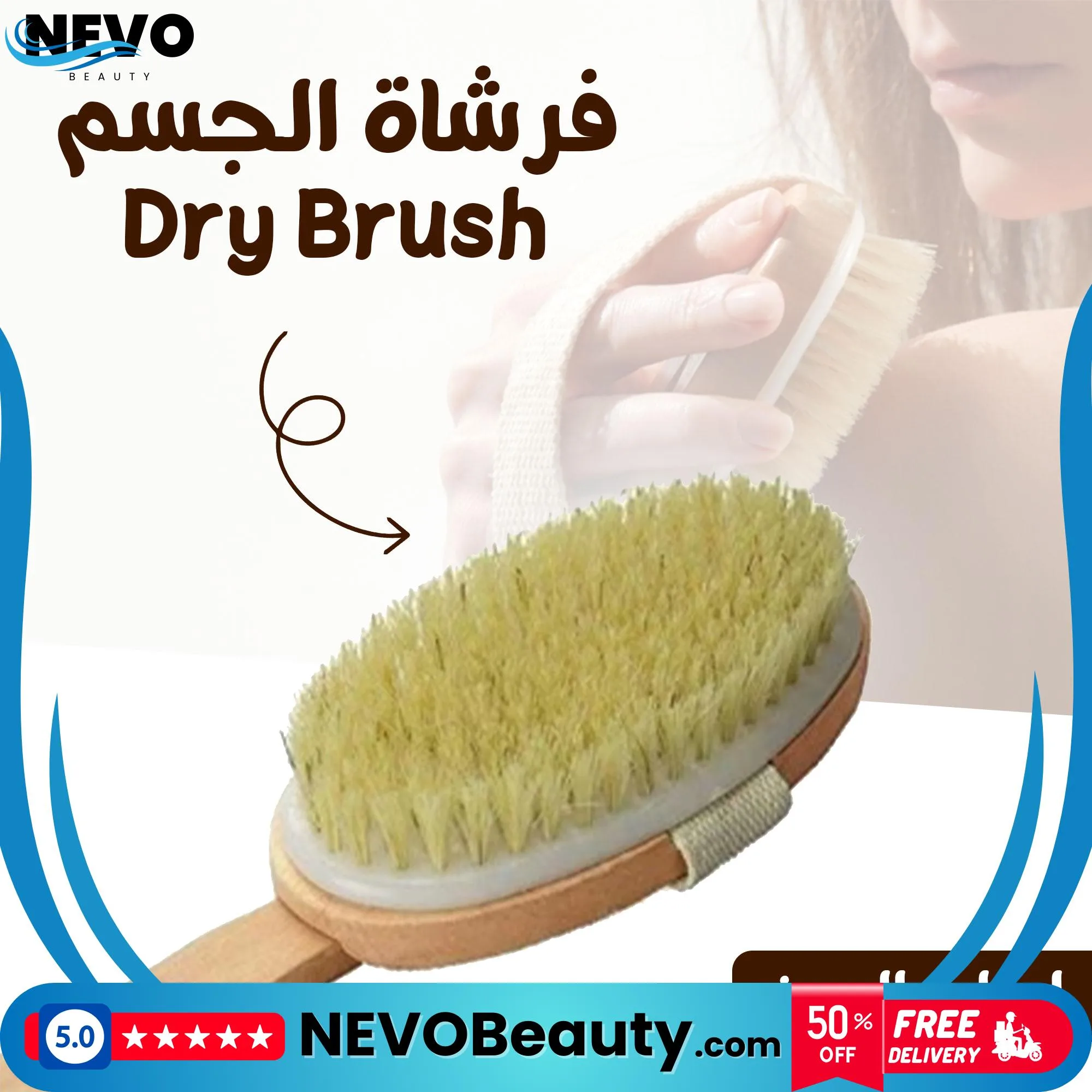 اطلبي الآن واستمتعي ببشرة ناعمة ومشرقة مع فرشاة الجسم الجافة.